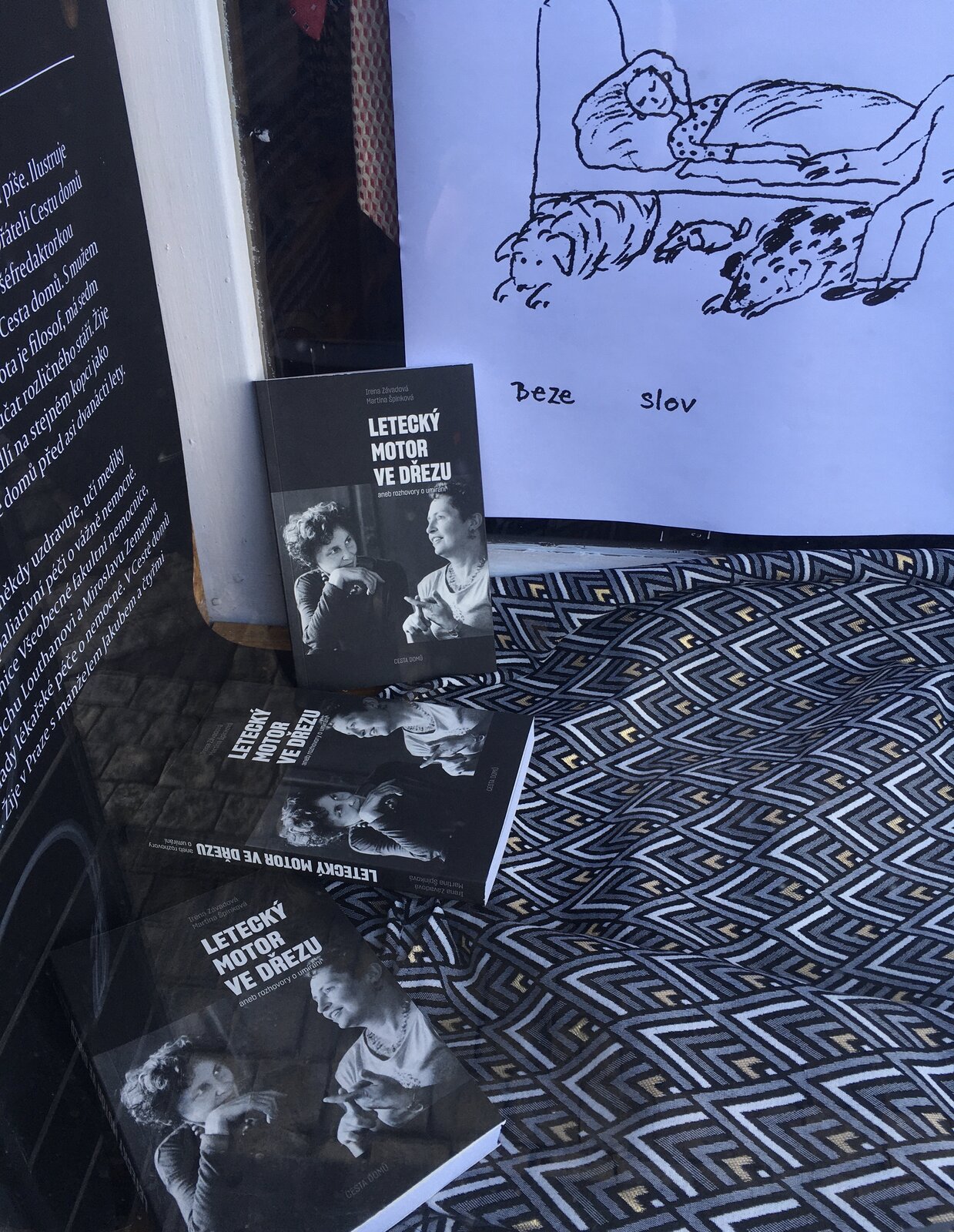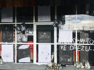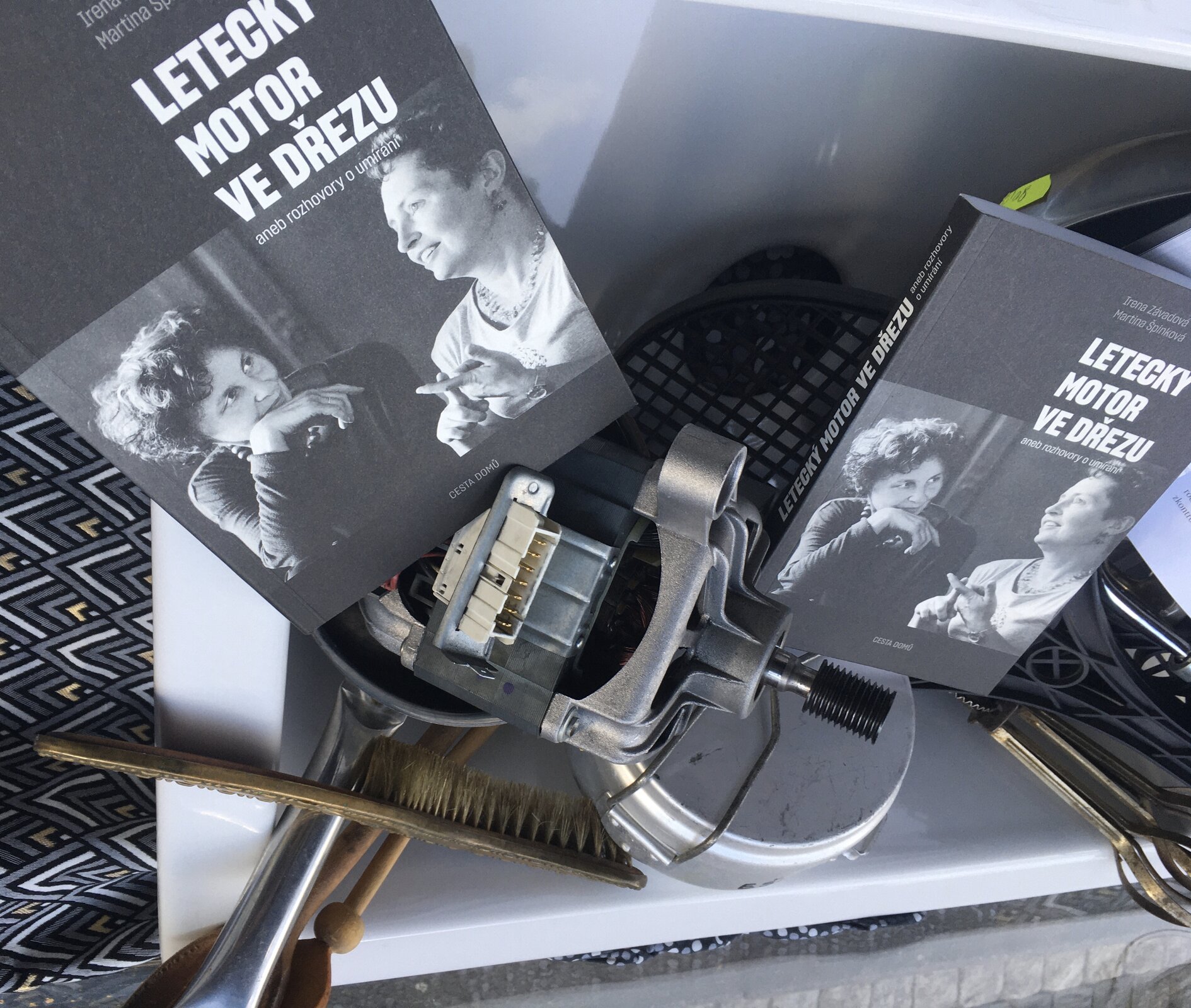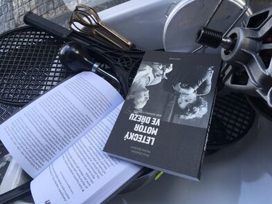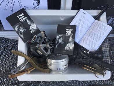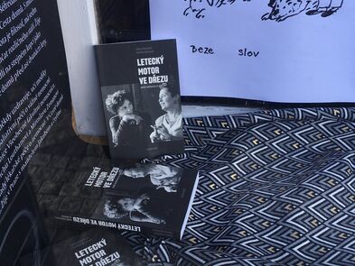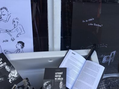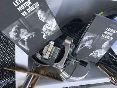 Ke knize Letecký motor ve dřezu vznikly tenké tužkové ilustrace a pak jsme vytvořily ke knize výlohu. Podívejte se, kdyžtak si v knize počtěte.